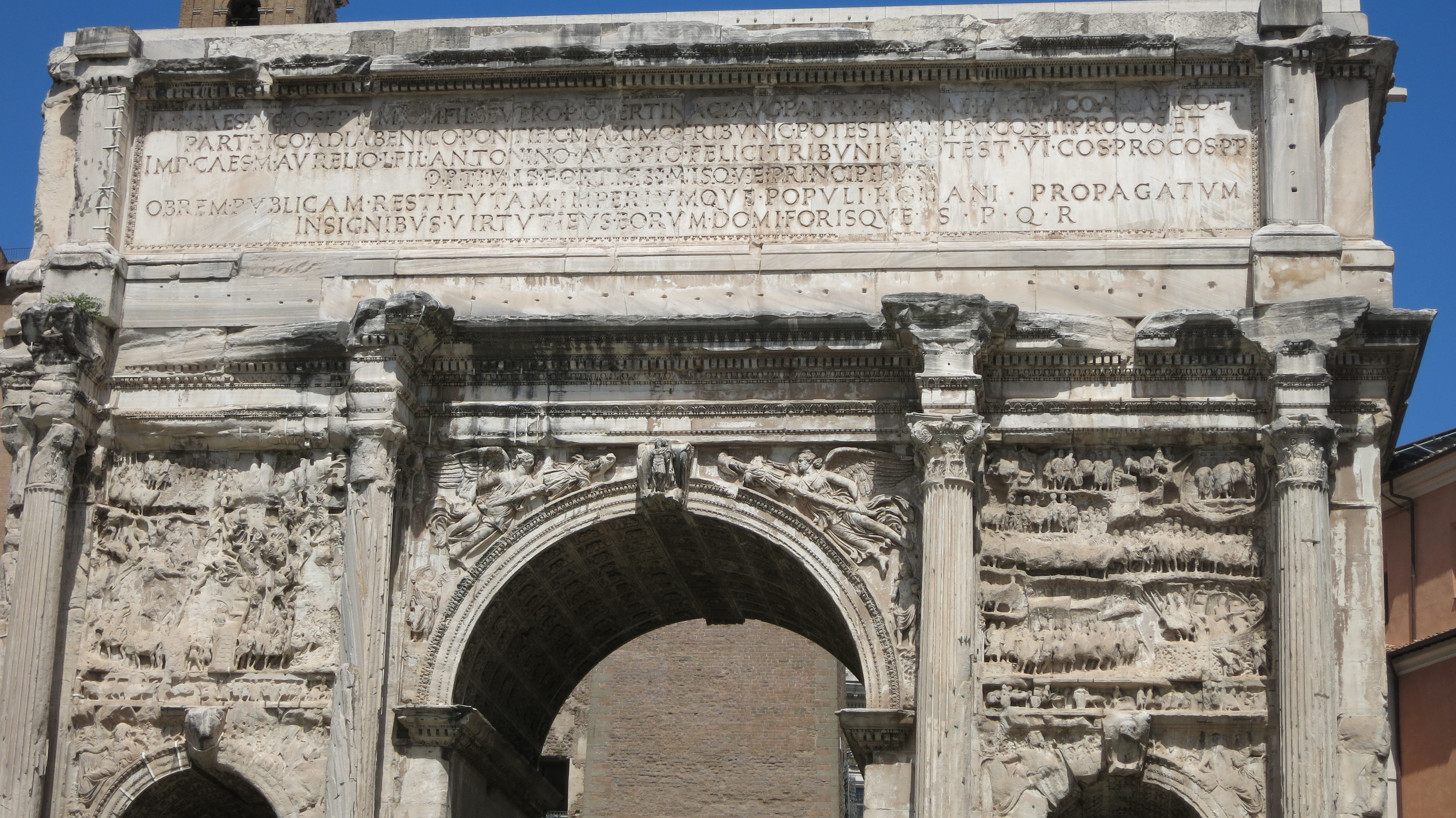 - Inscription celebrates victory of Septimius Severus and his sons.