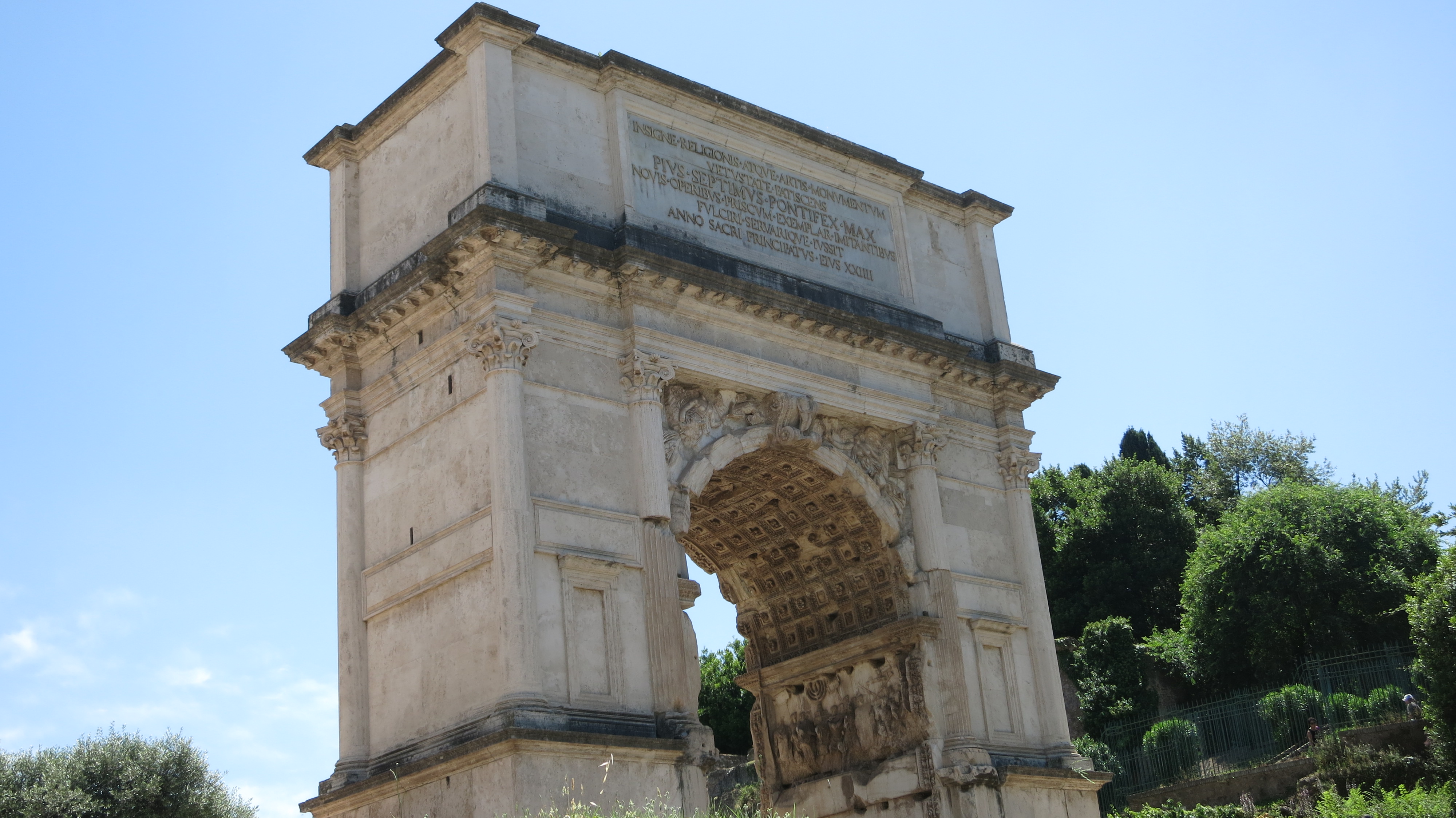 - Menora, artifacts from the triumph after the sack of Jerusalem on one interior side of the arch.