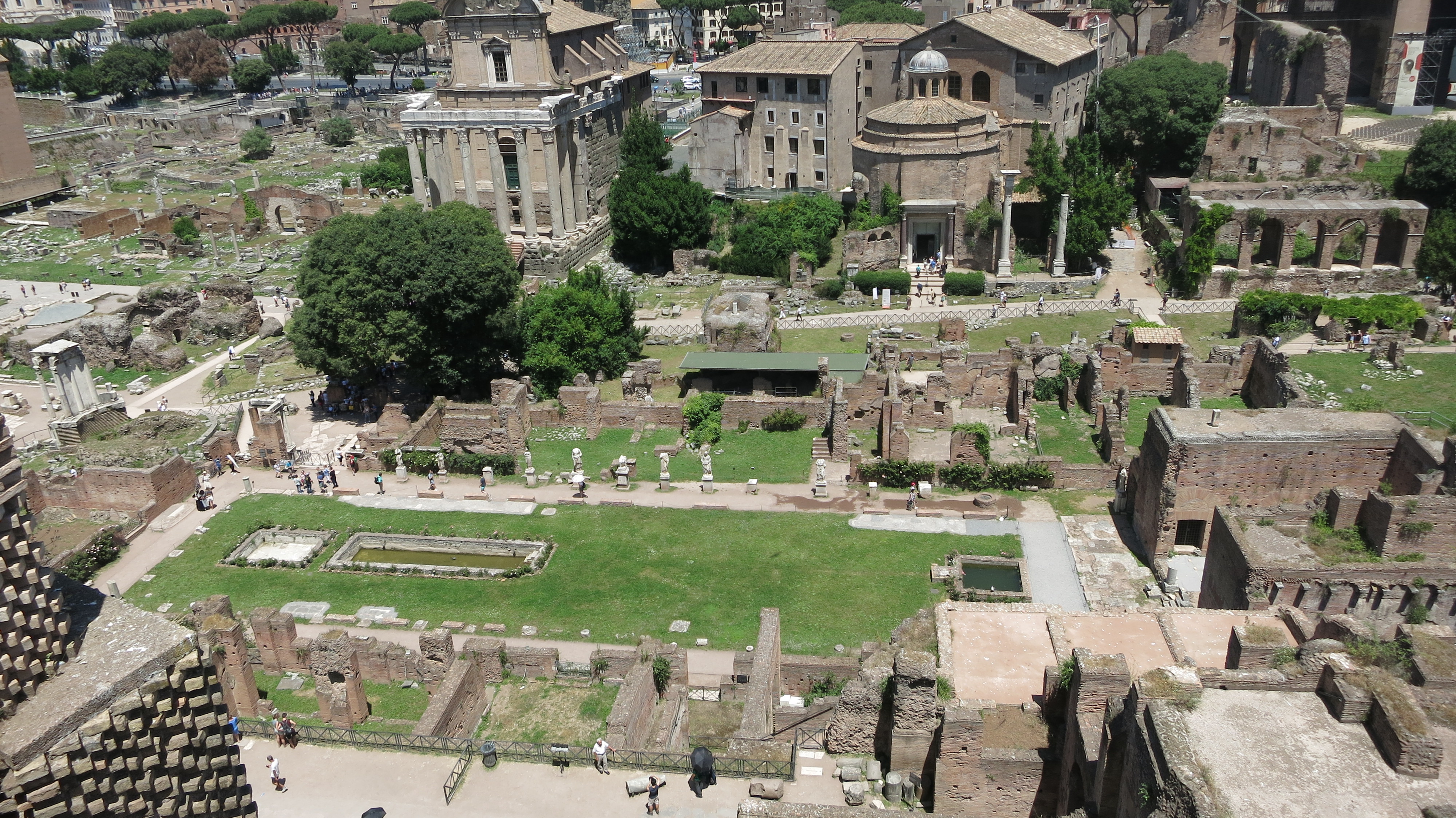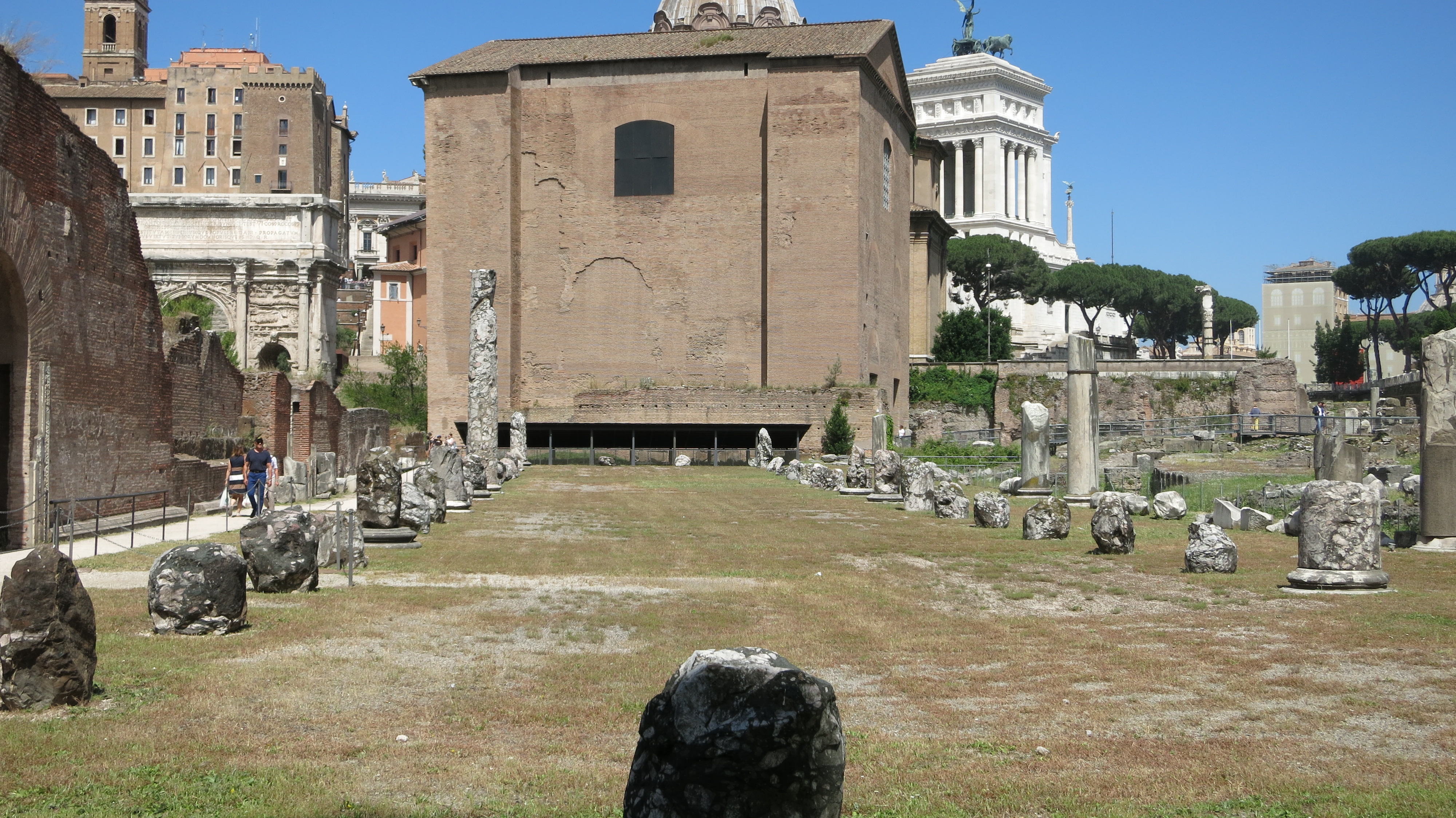 - Arch of Titus, the temple of Antoninus and Faustina, the Basilica Aemilia, the Curia.